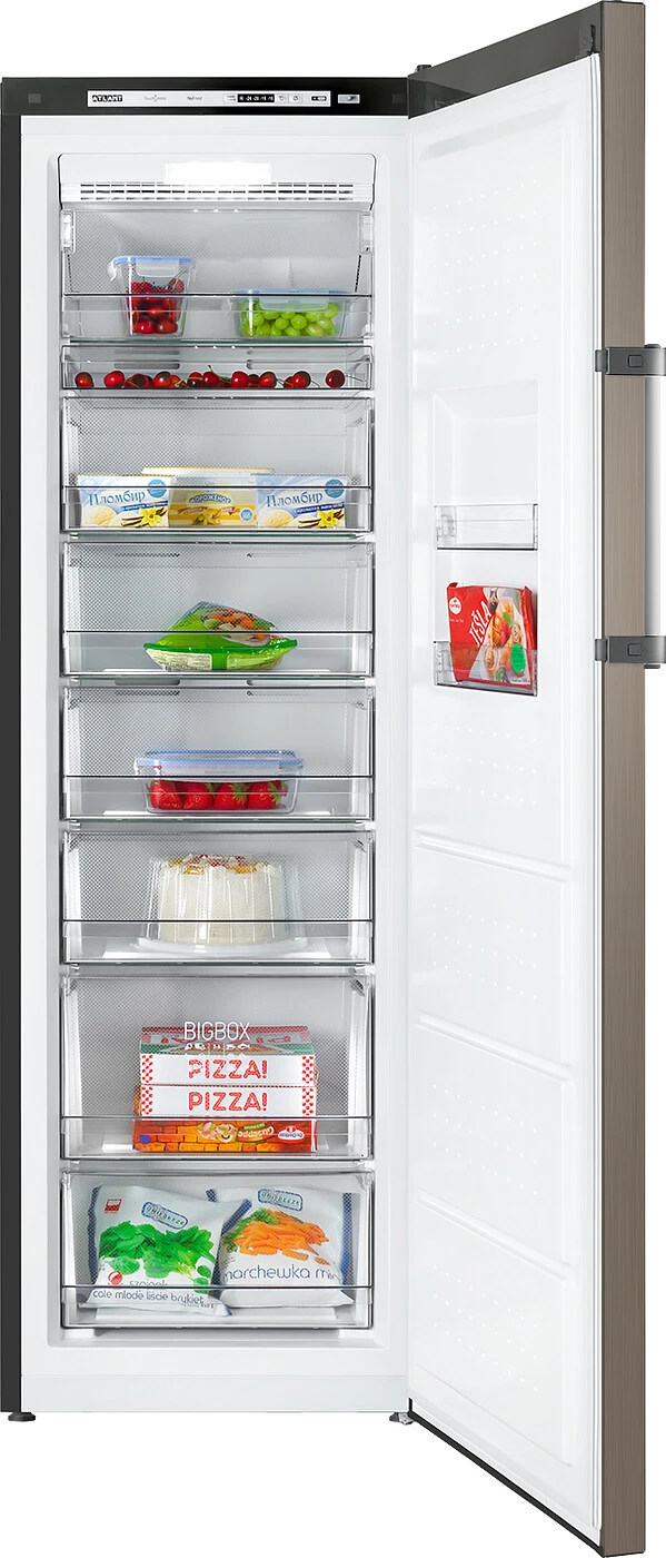 В морозильнике ATLANT серии ADVANCE впервые предусмотрена система охлаждения No Frost. Впечатляющий объем, электронное управление Touch Control, экономичное и надежное LED-освещение, 8 удобных отделений для замораживания и хранения продуктов, оригинальные емкости Slim Space, актуальный дизайн, механизм Easy Open, низкое энергопотребление — все эти особенности создают новый уровень комфорта и экономичного использования бытовой холодильной техники ATLANT.