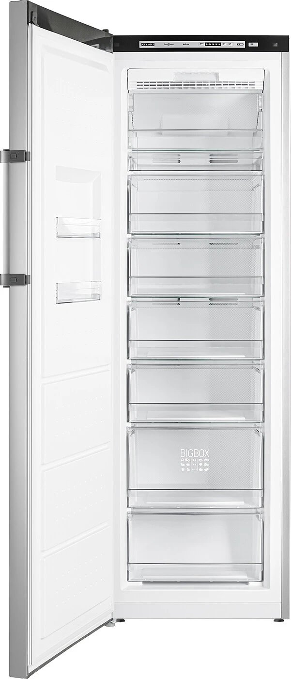 В морозильнике ATLANT серии ADVANCE впервые предусмотрена система охлаждения No Frost. Впечатляющий объем, электронное управление Touch Control, экономичное и надежное LED-освещение, 8 удобных отделений для замораживания и хранения продуктов, оригинальные емкости Slim Space, актуальный дизайн, механизм Easy Open, низкое энергопотребление — все эти особенности создают новый уровень комфорта и экономичного использования бытовой холодильной техники ATLANT.