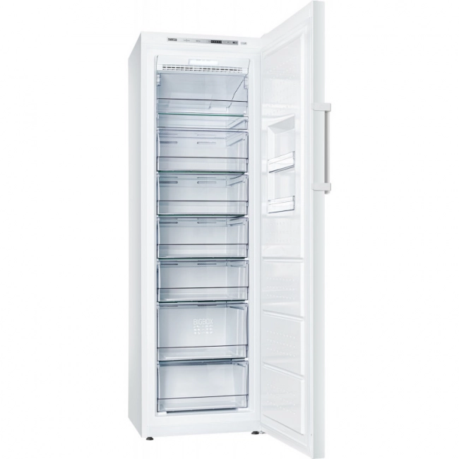 Увеличенная корзина BIG BOX расположена в нижней части морозильника и выполнена из ударопрочной прозрачной пластмассы, в которой можно разместить около 10 кг продуктов