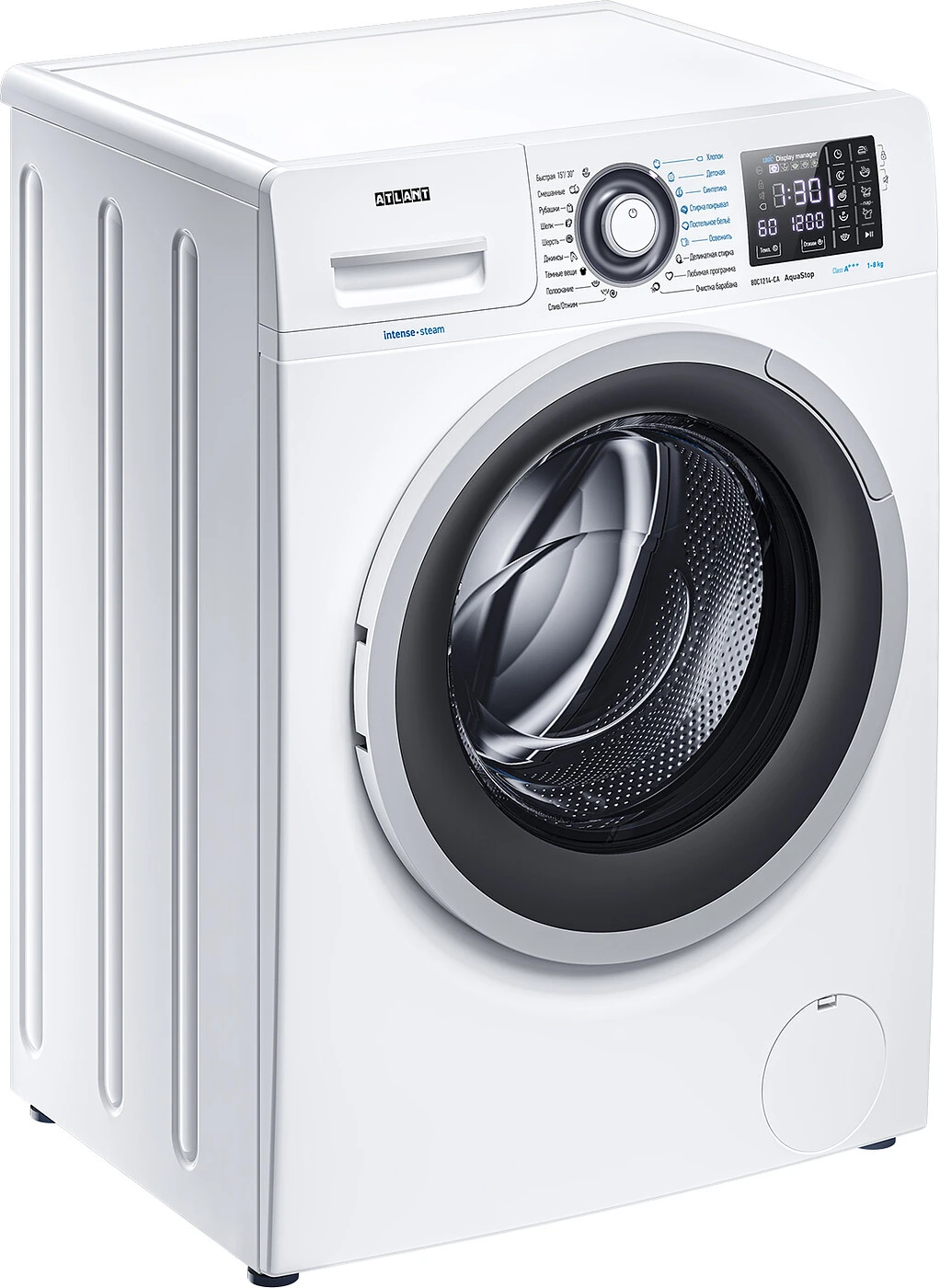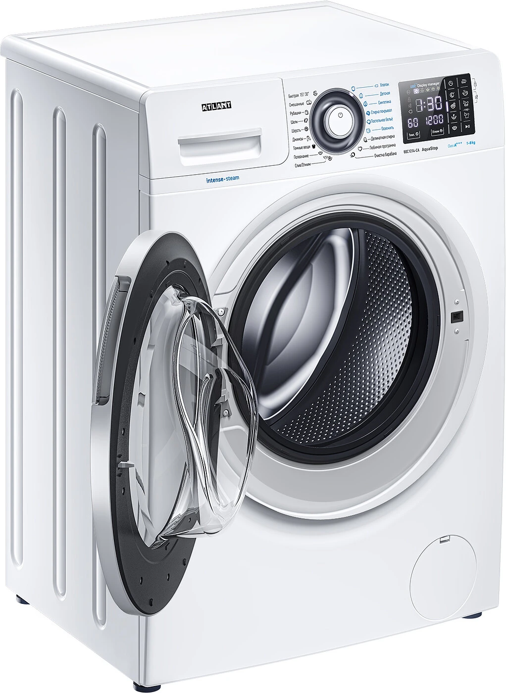 Стандартная стиральная машина Атлант СМА 80С1214-СA-01 автоматическая, с технологией обработки паром, загрузка до 8 кг, отжим 1200 об/мин, класс A+++, 18 программ
