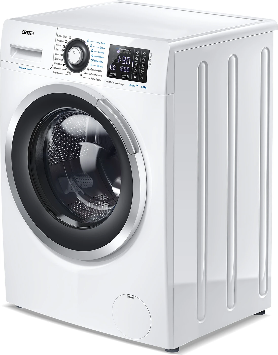 Стиральная машина ATLANT серии INTENSE STEAM с технологией обработки белья паром освежает, дезинфицирует и разглаживает белье благодаря новым режимам, включая программу «Освежить» и паровые опции «Стирка с паром» и «Обработка паром». Сенсорные технологии позволяют легко выбирать функции и программы, а светодиодные индикаторы и сегментный дисплей, расположенные под углом, облегчают восприятие информации. Просторный барабан вмещает значительное количество белья и предлагает множество программ для различных типов тканей. Антибактериальная защита ABG Technology подавляет размножение опасных микроорганизмов на уплотнителе, гребне и лотке для моющих средств. Также предусмотрена система защиты от протечек AQUA-STOP, обеспечивающая защиту как наливного шланга, так и корпуса. Увеличенная гарантия на двигатель составляет 5 лет.