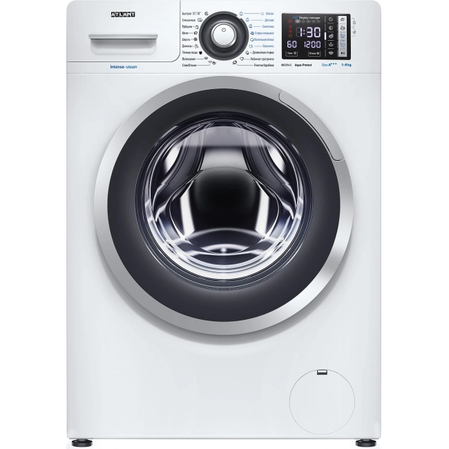 Новая стиральная машина ATLANT серии INTENSE STEAM с технологией обработки белья паром освежает, дезинфицирует и разглаживает белье. А это все благодаря новым режимам, которые добавлены в стиральную машину – программе «Освежить», а также паровым опциям – «Стирка с паром», «Обработка паром».С помощью новых сенсорных технологий достаточно легкого касания для выбора функций и программ. Светодиодные индикаторы и сегментный дисплей машины размещены на панели управления под небольшим углом, что облегчает визуальное восприятие отображаемой информации о работе машины. Просторный барабан, рассчитанный на 7 кг белья и 18 доступных программ, позволят выбрать режим, идеально подходящий для каждого типа ткани. Антибактериальная защита ABG Technology подавляет размножение и жизнедеятельность опасных для здоровья человека микроорганизмов на уплотнителе, гребне и лотке для моющих средств. Кроме того, действует увеличенная гарантия 5 лет на двигатель.
