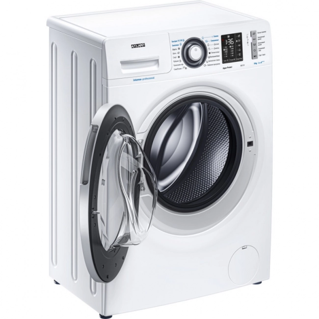 Новая стиральная машина ATLANT серии INTENSE PROFESSIONAL имеет уникальный дизайн, который прекрасно дополнит любой интерьер своим внешним видом. С помощью новых сенсорных технологий достаточно легкого касания для выбора функций и программ. Светодиодные индикаторы и сегментный дисплей машины размещены на панели управления под небольшим углом, что облегчает визуальное восприятие отображаемой информации о работе машины. Благодаря интеллектуальным программам она не только интуитивно понятна в управлении, но и обеспечивает превосходные результаты стирки при низком потреблении воды и электроэнергии. Кроме того, действует увеличенная гарантия 5 лет на двигатель.