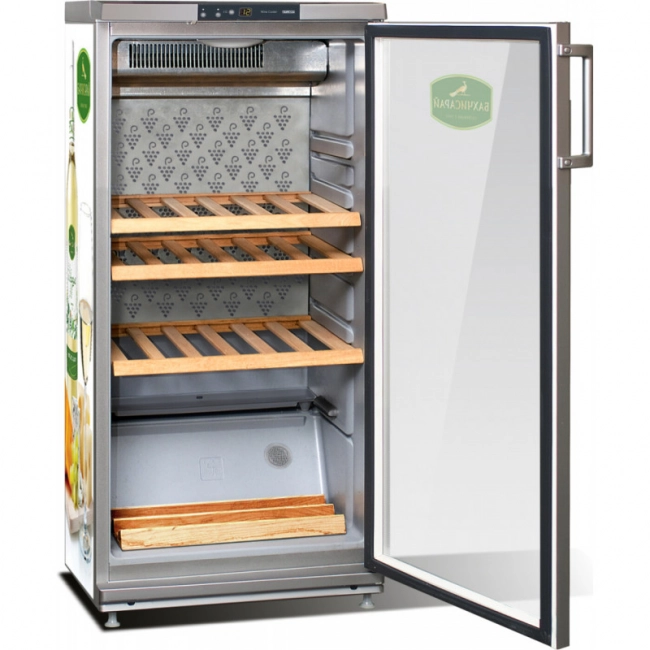 Решетчатая конструкция переставляемых по высоте полок из дуба или бука исключает скатывание бутылок