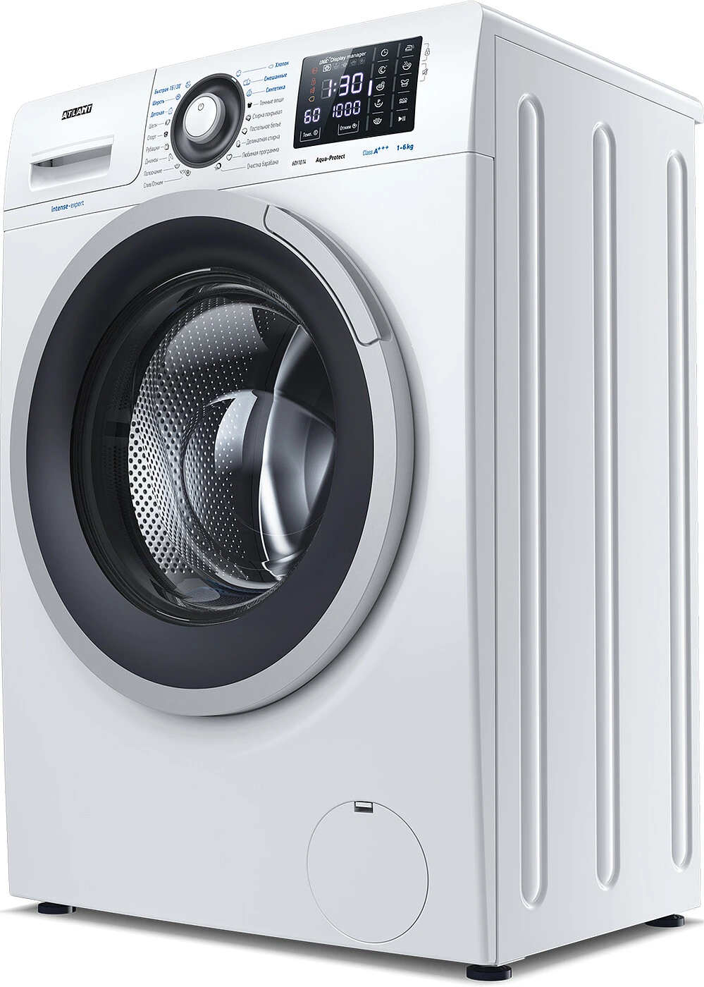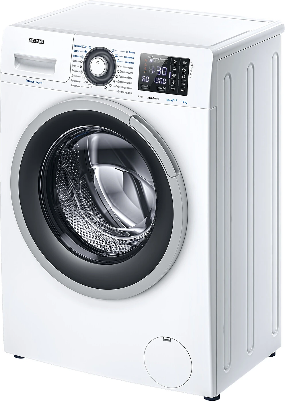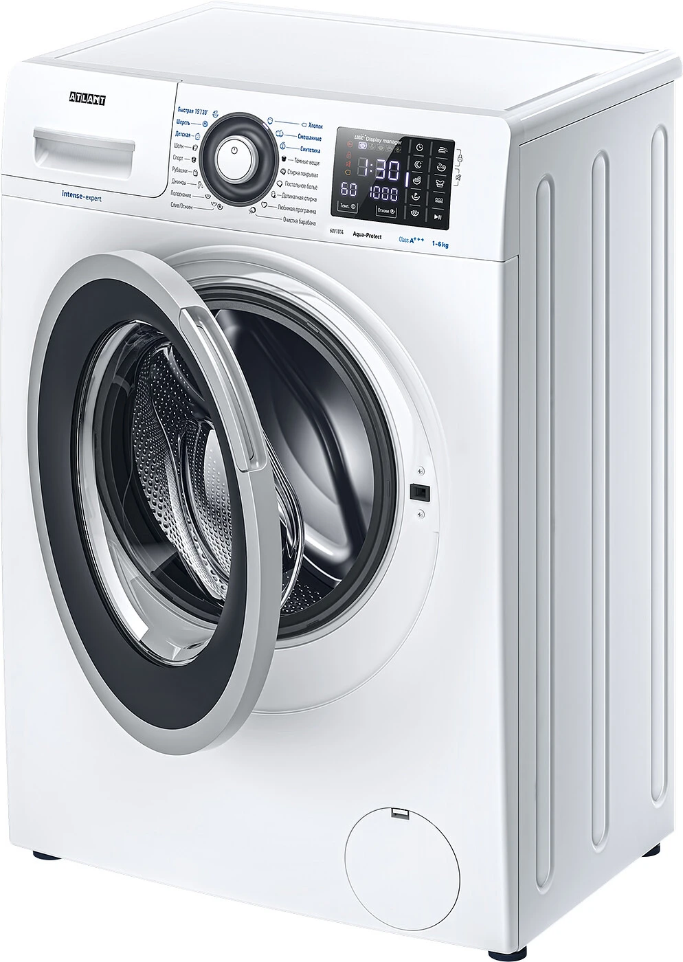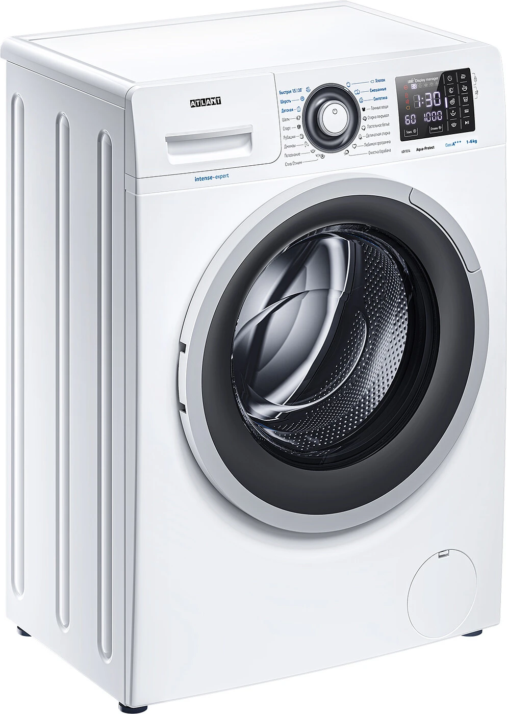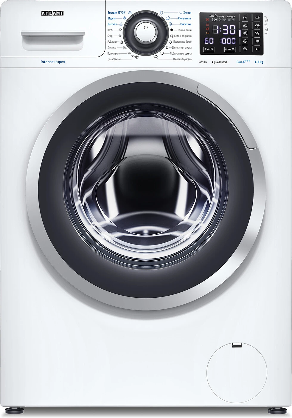 Новая стиральная машина ATLANT серии INTENSE PROFESSIONAL имеет уникальный дизайн, который прекрасно дополнит любой интерьер своим внешним видом. С помощью новых сенсорных технологий достаточно легкого касания для выбора функций и программ. Светодиодные индикаторы и сегментный дисплей машины размещены на панели управления под небольшим углом, что облегчает визуальное восприятие отображаемой информации о работе машины. Благодаря интеллектуальным программам она не только интуитивно понятна в управлении, но и обеспечивает превосходные результаты стирки при низком потреблении воды и электроэнергии.