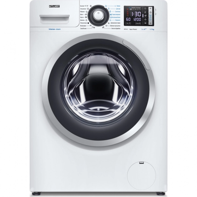 Новая стиральная машина ATLANT серии INTENSE STEAM с технологией обработки белья паром освежает, дезинфицирует и разглаживает белье. А это все благодаря новым режимам, которые добавлены в стиральную машину – программе «Освежить», а также паровым опциям – «Стирка с паром», «Обработка паром».С помощью новых сенсорных технологий достаточно легкого касания для выбора функций и программ. Светодиодные индикаторы и сегментный дисплей машины размещены на панели управления под небольшим углом, что облегчает визуальное восприятие отображаемой информации о работе машины. Просторный барабан, рассчитанный на 7 кг белья и 18 доступных программ, позволят выбрать режим, идеально подходящий для каждого типа ткани. Антибактериальная защита ABG Technology подавляет размножение и жизнедеятельность опасных для здоровья человека микроорганизмов на уплотнителе, гребне и лотке для моющих средств. Кроме того, действует увеличенная гарантия 5 лет на двигатель.